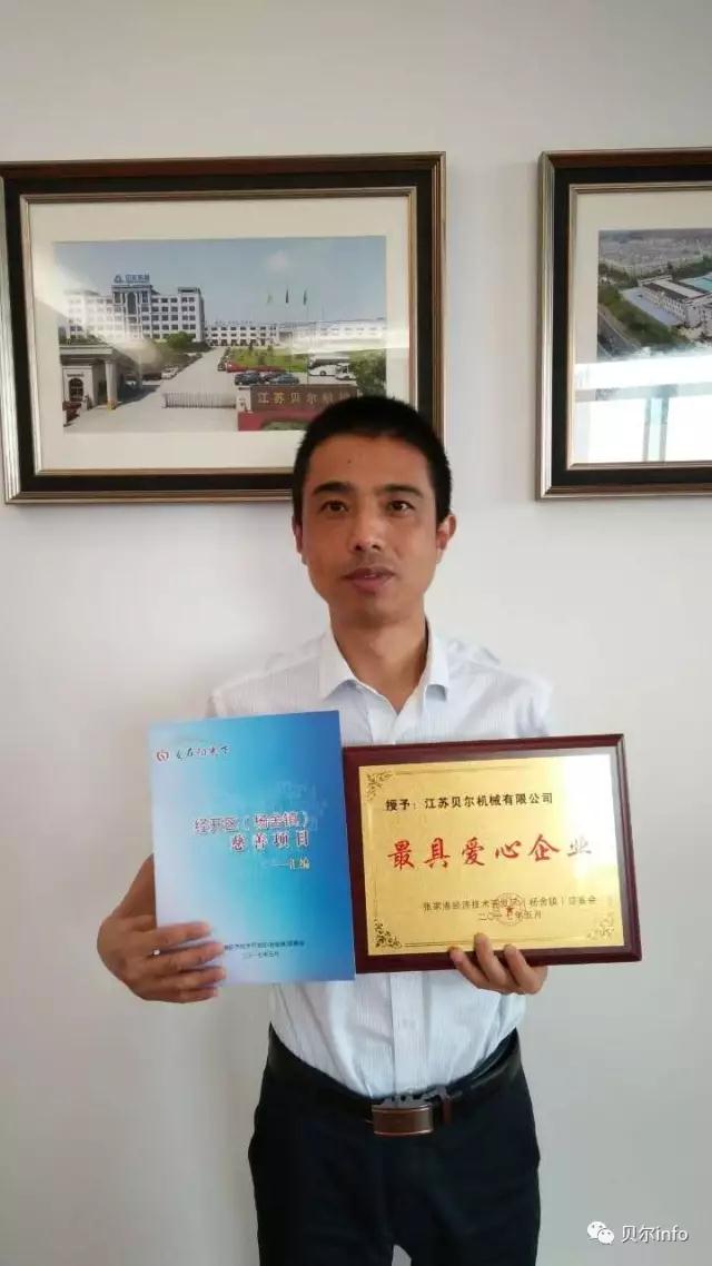 今天,江蘇貝爾機械榮獲經(jīng)濟技術(shù)開發(fā)區(qū)慈善會頒發(fā)的‘最具愛心企業(yè)’稱號。